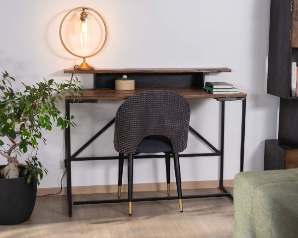 Le linee morbide e arrotondate di questa sedia da pranzo, con lo schienale curvo e imbottito traforato, le conferiscono un aspetto leggero e accogliente. La seduta è liscia e screziata, mentre lo schienale è strutturato al tatto e satinato alla vista. Le texture di questi due elementi sono un delizioso contrasto, ma lavorano armoniosamente insieme in una sinfonia di blu scuro e grigio.