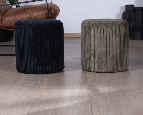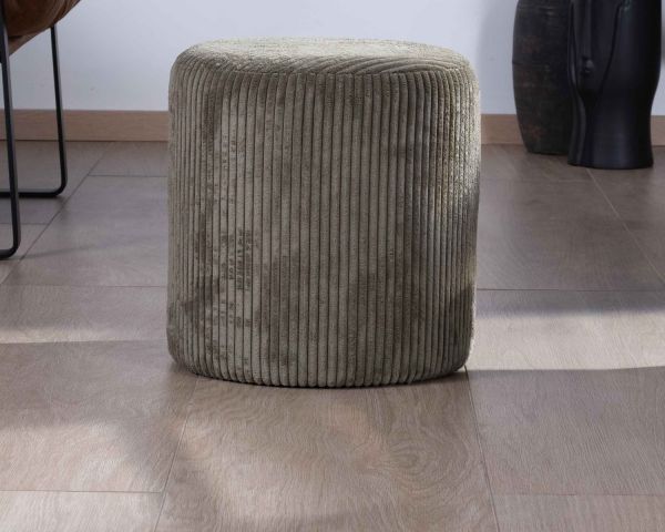 Il tessuto a coste creerà immediatamente una sensazione di comfort ovunque lo si collochi. In questa tonalità verde kaki, questo pouf aggiunge un tocco tenue e senza tempo, caldo senza essere invadente.