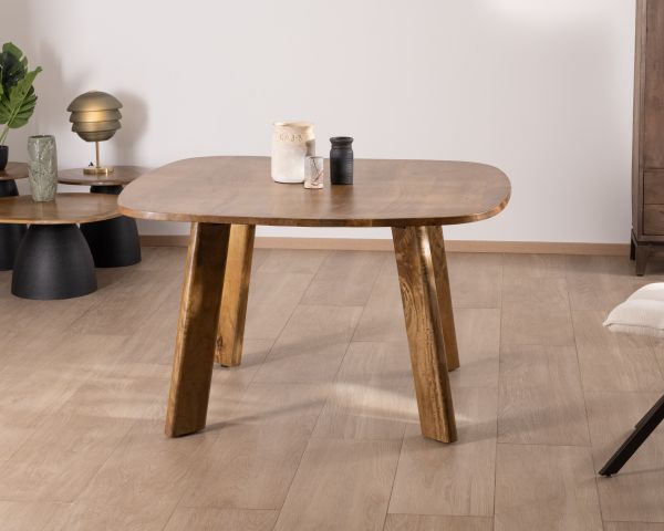 Il legno di mango aggiunge un tocco caldo e organico, mentre la forma del piano di questo tavolo da pranzo con i suoi bordi arrotondati diffonderà una nota morbida e accogliente nella vostra stanza.