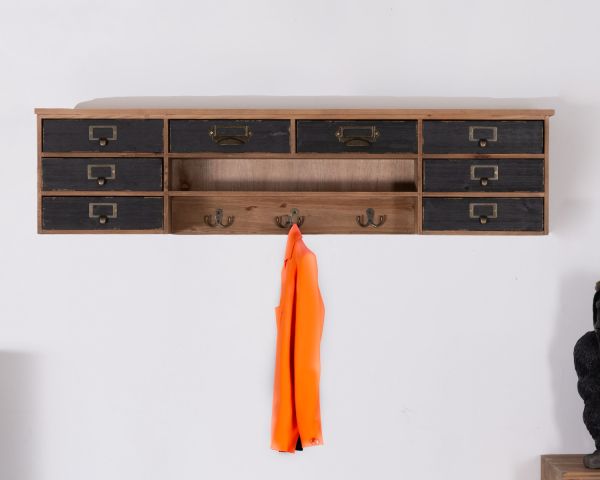 Aggiungete un tocco pratico e decorativo al vostro corridoio con questa mensola a muro e i suoi otto pratici cassettini della collezione "Mélimélo Indus".