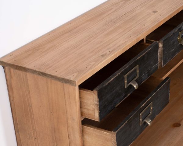 Con il suo design semplice e i frontali verniciati in nero invecchiato, questo piccolo mobile pensile aggiunge un tocco di nostalgia.