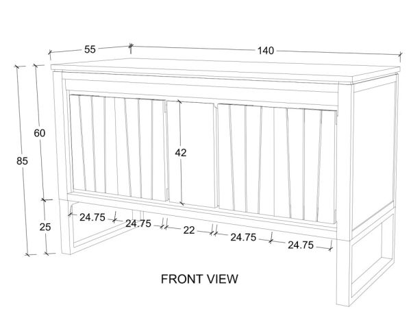 Lunghezza: 140 cm; Profondità: 55 cm; Altezza: 85 cm
