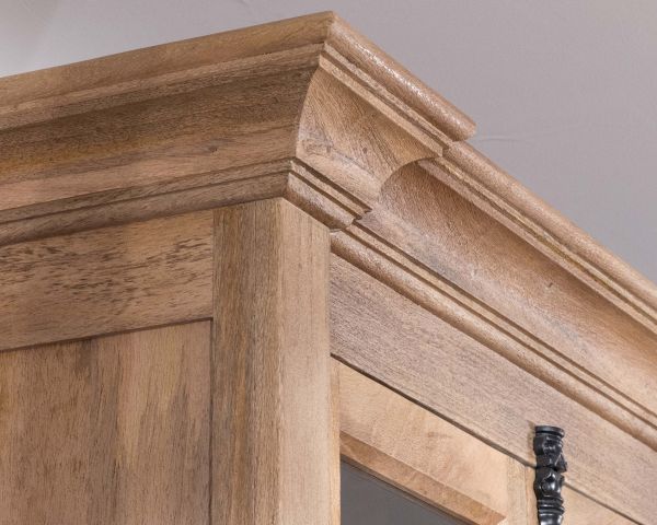 Con il suo fascino nostalgico, le maniglie a cremagliera e le cornici sagomate, questo grande mobile per le porcellane è lungo 170 cm e alto 236 cm. La sua imponente statura e il suo design senza tempo creano una sensazione di serenità.