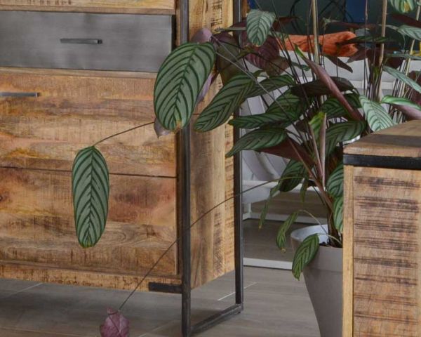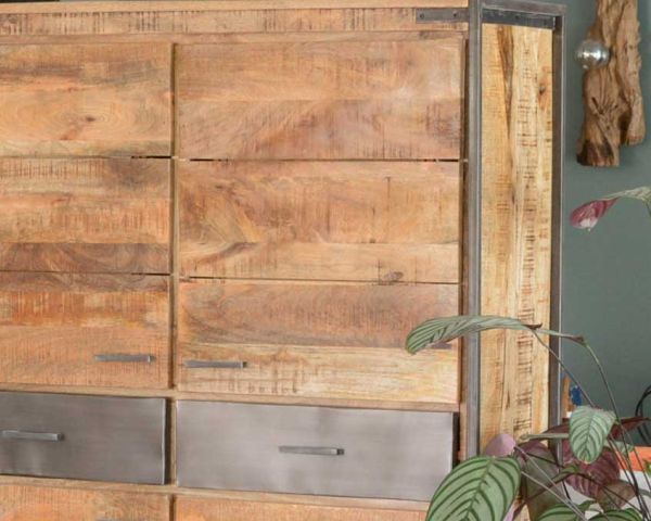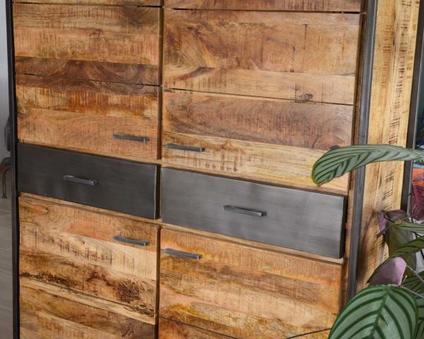 Le finiture più o meno grezze e solide conferiscono al mobile un'atmosfera autentica. Il metallo, che esalta il legno di mango naturale, garantisce anche la stabilità e la durata del mobile. Robusto come sempre, il legno di mango dona un tocco di colore alla vostra casa. Ogni credenza è unica al 100%, perché tutti i mobili della gamma Shade sono realizzati in legno naturale. Ammirate le diverse sfumature di miele del legno di mango e le striature più scure che contraddistinguono la bellezza del legno esotico. Questo mobile è così imponente che è bene posizionarlo davanti a pareti chiare, in modo che funga da elemento decorativo. Poiché non è troppo alto, potete anche utilizzare la parte superiore per esporre una pianta appesa, per aggiungere un tocco di verde al vostro loft. Alcuni cestini in fibra di cotone o rafia accanto ad esso aggiungeranno un tocco esotico all'ambiente.