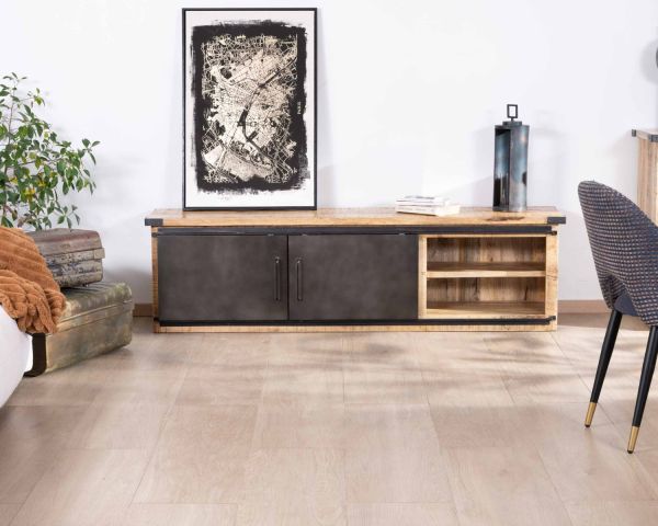Il mobile TV da 160 cm fa parte della gamma "Caractère", che comprende una serie di mobili per completare il look industriale del vostro salotto: sedie, credenza, tavolo in legno massiccio, tavolino, libreria o cassettiera. C'è anche un altro mobile TV di 180 cm di lunghezza.