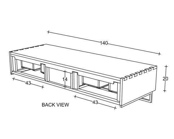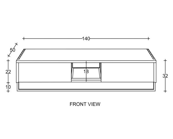 Lunghezza: 140 cm; Profondità: 50 cm; Altezza: 32 cm