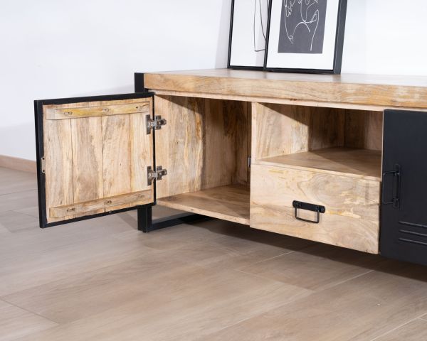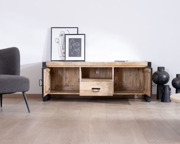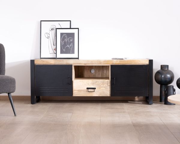 Ideale per un arredamento moderno o più industriale, il vostro nuovo mobile sarà tanto robusto quanto elegante. Questo mobile TV sarà perfetto anche in interni più classici, dove aggiungerà carattere.