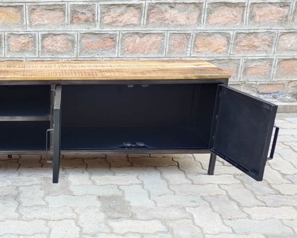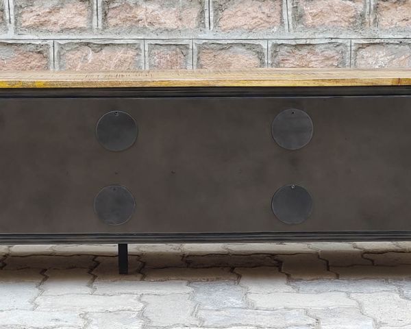 Grazie al suo design ben realizzato, la vostra panca TV è robusta e solida. Inoltre, si regge su 5 gambe per una maggiore stabilità. Niente male, eh? È realizzata con materiali di qualità che ne garantiscono la durata nel tempo. La sua robustezza, le finiture e il piano in mango massiccio trasporteranno senza dubbio il vostro salotto in un mondo da officina. Il metallo è stato volutamente lavorato per conferirgli un aspetto "invecchiato", lasciando visibili i rilievi del materiale e alcune saldature per accentuare il carattere "indus" del mobile.