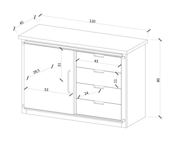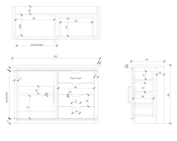 Lunghezza: 120 cm, Profondità: 45 cm, Altezza: 80 cm