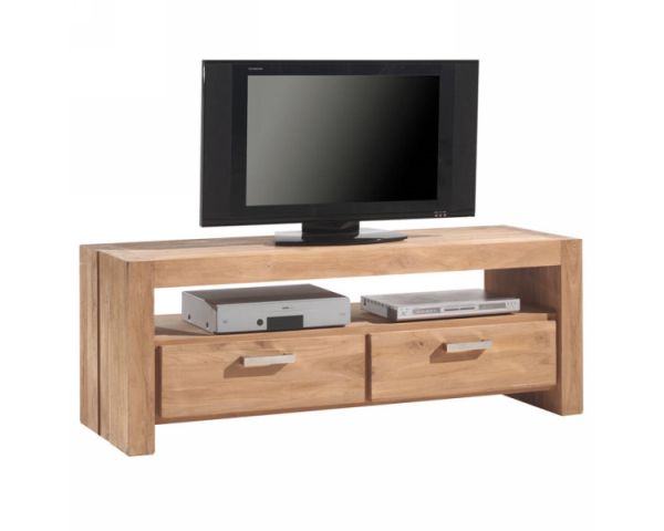 Porta TV, modello piccolo in teak massiccio spazzolato. È molto pratico con la sua nicchia per gli apparecchi hi-fi. Sono presenti 2 cassetti montati su guide metalliche. Il mobile si apre completamente. Le maniglie dei cassetti sono in metallo. La struttura è in teak massiccio, con lo schienale in compensato. Collezione "Bornéo" in teak massiccio spazzolato.