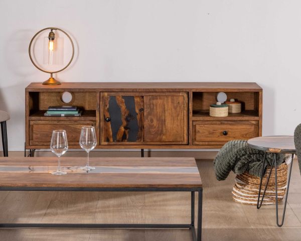 Elemento chiave della maggior parte dei soggiorni contemporanei, il mobile TV è il punto focale dell'attenzione di tutti durante il tempo del cinema e parte integrante dell'arredamento nel resto del tempo. Il porta TV in acacia oliata "Membatu" è una fuga dei sensi e un viaggio nel tempo.