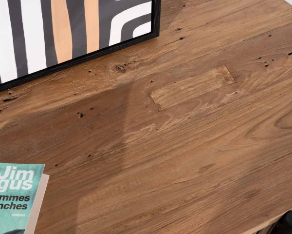 NB: A causa dell'uso di legno riciclato, il piano di questo mobile può presentare bordi ruvidi, piccole crepe, avvallamenti e piccoli difetti, che fanno parte del suo fascino.