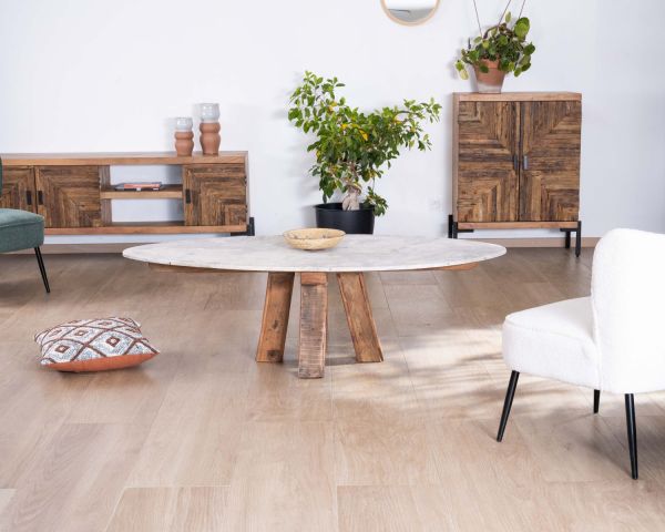 In contrasto armonioso con i frontali, il resto del mobile TV è realizzato in acacia massiccia con una finitura liscia e oliata, morbida al tatto e setosa alla vista. Le venature voluttuose vengono esaltate, aggiungendo profondità e carattere al vostro spazio.