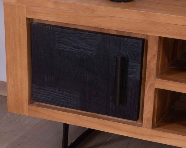 Mobile TV moderno 'Trend' a 2 ante e 2 nicchie in teak di recupero e metallo