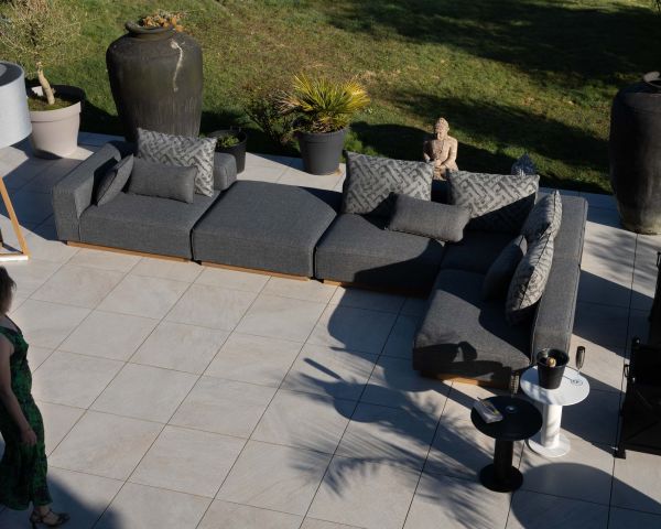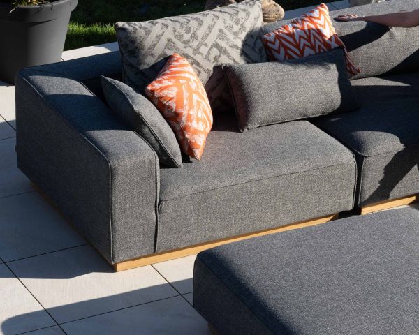 Materiali: Tessuto speciale per esterni, imbottitura in schiuma, teak massiccio, alluminio