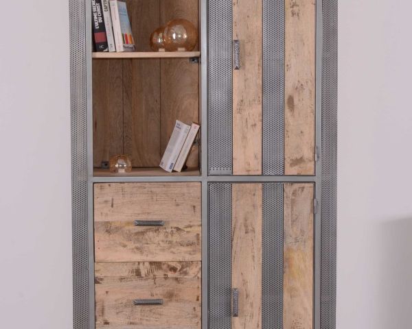 Realizzato in legno di mango e metallo traforato grigio, questo mobile ha uno stile e una personalità innegabili. Materiali naturali e industriali si incontrano con forza e morbidezza allo stesso tempo. Un mobile incredibile! Bello sia da davanti che da dietro, può anche essere utilizzato per definire gli spazi del vostro loft. Ad esempio, se ne posizionate due una accanto all'altra, le vostre librerie vi permetteranno di creare una zona ufficio rilassata nella vostra grande stanza open space.