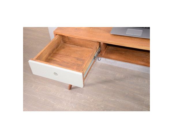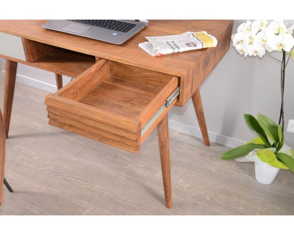 Con le sue dimensioni di 117 x 60 x 75 cm.dimensioni di 117 x 60 x 75 cm (LxPxA), il vostro mobile sarà facilmente trasportabile), il vostro mobile troverà facilmente posto in un piccolo angolo del soggiorno trasformato in area di lavoro, su un luminoso pianerottolo o nell'angolo di una camera da letto o di una veranda, ad esempio. Il vostro mobile sarà utile ed elegante allo stesso tempo, perfetto per chi ama lavorare in modo trendy! Il trattamento MDF sbiancato del cassetto sinistro aggiunge un tocco di modernità a questa splendida scrivania in legno che potrete utilizzare regolarmente. Con le sue linee eleganti e il suo legno esotico, il vostro mobile resisterà senza timore alla prova del tempo, e potrete sempre abbinarlo a set di scrittura di colori diversi per cambiare l'arredamento con una spesa minima.