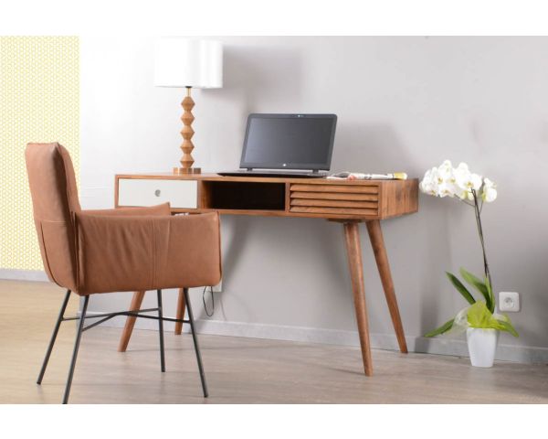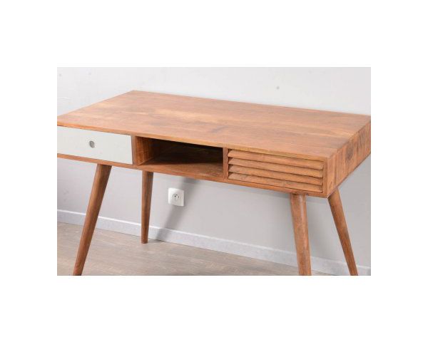 La parte emotiva è finita! Ora è il momento di lavorare da casa! Sulla vostra scrivania in legno alla moda, avrete abbastanza spazio per mettere il vostro computer portatile e i vostri documenti cartacei. Il cassetto in MDF bianco a sinistra conterrà il vostro organizer, mentre quello a destra conterrà tutti i piccoli soprammobili e le penne... Al centro, troverete una nicchia per le vostre riviste di arredamento preferite.Lo spazio di lavoro è ottimizzato, i moduli di archiviazione semplificano la vitae quando il lavoro è finito, tutto sarà perfettamente in ordine e fuori dai piedi. Domani sarà il momento di tirare fuori tutto e tornare al lavoro...