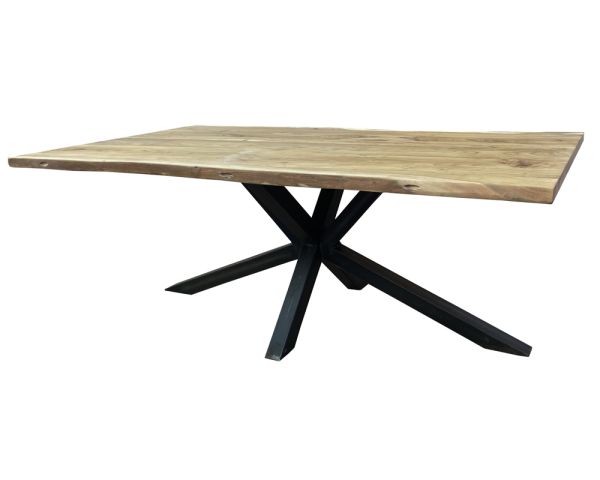 La collezione "3D" comprende alcuni pezzi davvero belli, tra cui questo splendido tavolo da pranzo in legno massiccio. Il suo stile industriale si fonde con l'esotismo del piano in acacia. Il legno si fonde perfettamente con il metallo. Le sue quattro gambe incrociate manterranno il vostro mobile perfettamente stabile. Robusto e raffinato allo stesso tempo, il tavolo si adatterà all'arredamento scelto.