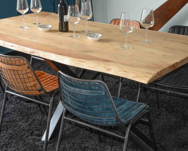 Questo mobile armonioso unisce bellezza e praticità. Il piano in acacia, combinato con l'aspetto grezzo del metallo, gli conferisce un carattere industriale, pur mantenendo un'atmosfera molto naturale. Grazie alle sue numerose caratteristiche, questo tavolo si adatta a qualsiasi tipo di arredamento. È molto facile da pulire. Bicchieri rovesciati e macchie di cibo non saranno più un problema, grazie al legno grezzo facile da pulire. Una spugna o un panno umido lo faranno risplendere.