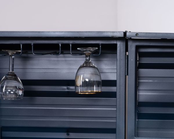 - Chiusura in metallo sul lato del mobile; i catenacci dorati sono solo decorativi