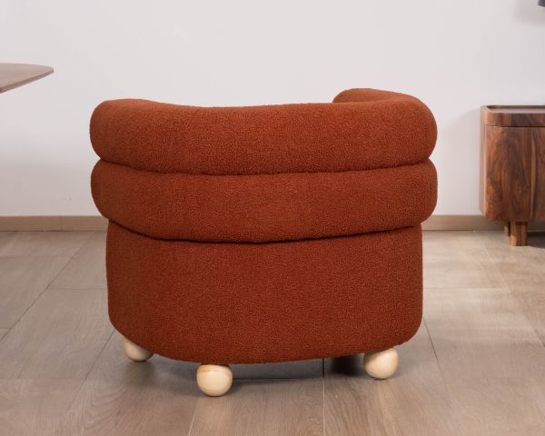 Morbido tessuto bouclette color terracotta; composizione 100% poliestere