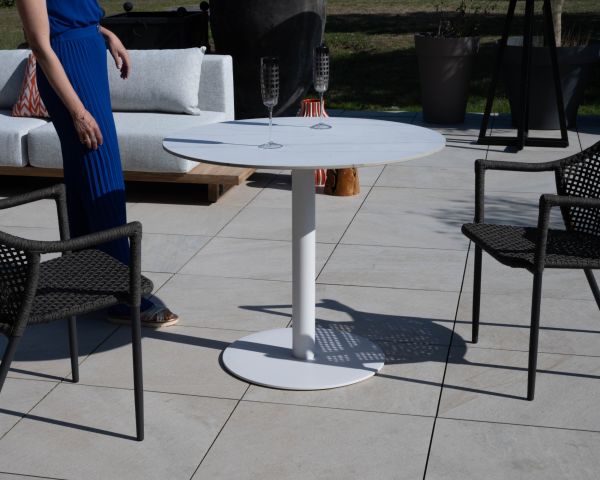 La céramique et l'acier sont des matériaux robustes, naturellement résistants à la corrosion. L’entretien est donc simplifié et consiste en un simple nettoyage à l’eau, ajoutée éventuellement d’un peu de savon ou de liquide vaisselle, et d’un essuyage pour laisser votre table belle sans une trace. Lorsque vous ne l’utilisez pas durant la période hivernale vous pouvez couvrir votre meuble ou le stocker à couvert mais il supportera sans difficultés de rester dehors.