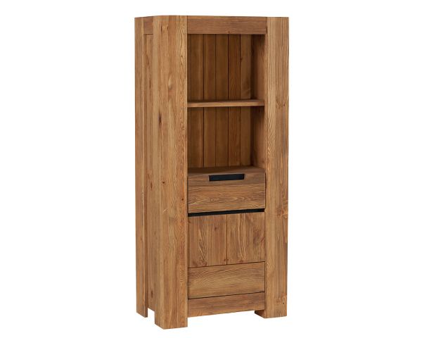 Dettagli tecnici : Pino massiccio spazzolato, finitura smaltata Cassetto su guide metalliche ad apertura totale Maniglia incassata laccata nera Nicchia superiore: altezza 414 mm, profondità 358 mm, larghezza 619 mm Nicchia inferiore: altezza 342 mm, profondità 358 mm, larghezza 619 mm 44 kg Finitura in pino spazzolato molto grezzo, con bordi ruvidi al tatto