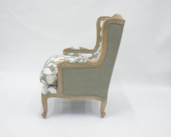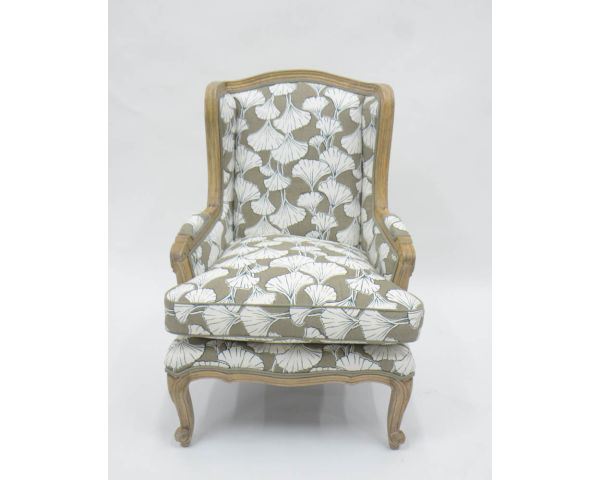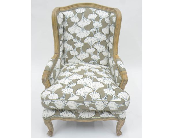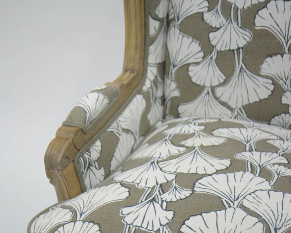 Sedia da pastore "Sofia" con stampa ginko color tortora e crema, ultraconfortevole