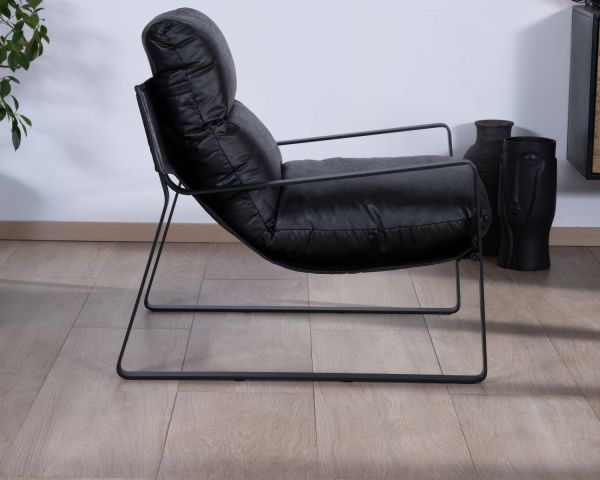 Progettata per garantire un comfort ottimale, questa poltrona in stile club ha una seduta ampia e avvolgente e uno schienale leggermente inclinato per una postura confortevole. La base in metallo nero ne esalta il look contemporaneo e garantisce un'ottima stabilità.