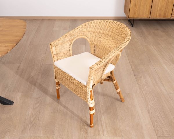 È sufficiente una pulizia quotidiana con un panno in microfibra per rimuovere la polvere. Pulire regolarmente le sedie con una spugna inumidita con sapone naturale e lasciare asciugare. Per nutrire e ripristinare la lucentezza del rattan, applicare una o due volte l'anno dell'olio di lino.