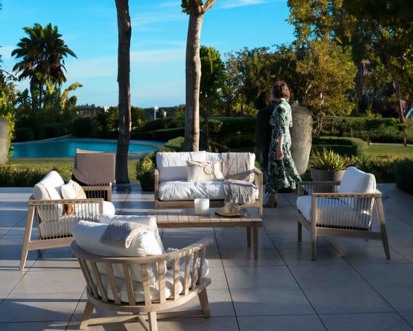 Materiali: Teak massiccio, tessuto e imbottitura in schiuma