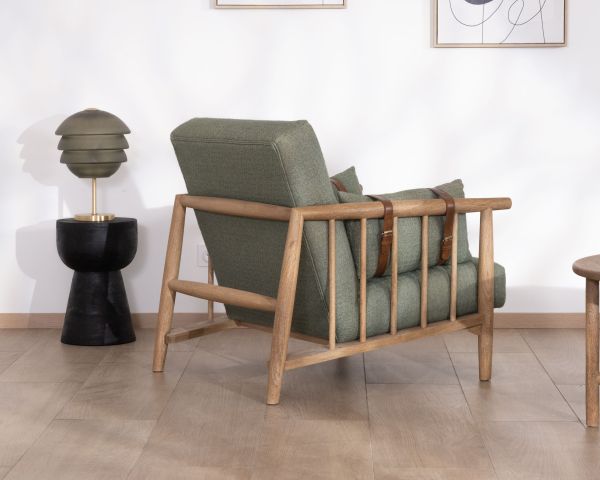 Materiali: tessuto, legno di mango massiccio, imbottitura, pelle