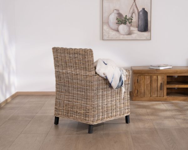 Questa poltrona in legno di kubu grigio della linea "Balangan Beach" sarà perfetta per i vostri momenti di relax. Darà un tocco di freschezza e cura agli ambienti esterni, mentre all'interno creerà un'atmosfera accogliente e calda.