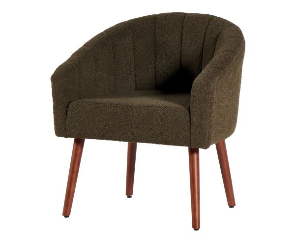 La poltrona "Alrow" in tessuto kaki e legno di caucciù massiccio tinto noce unisce la bellezza di un legno naturale, il vantaggio di un tessuto morbido con effetto arricciato e la grazia di un design direttamente ispirato ai mobili scandinavi. Rotonda ed elegante, questa poltrona Casita è perfetta per prendersi una meritata pausa in salotto, in camera da letto o anche in veranda accanto alla libreria.