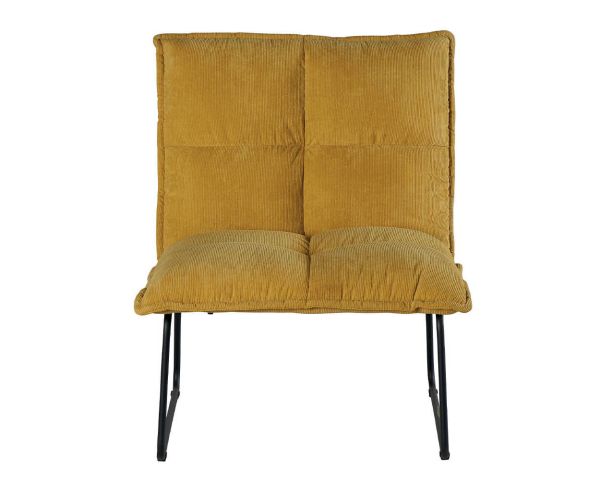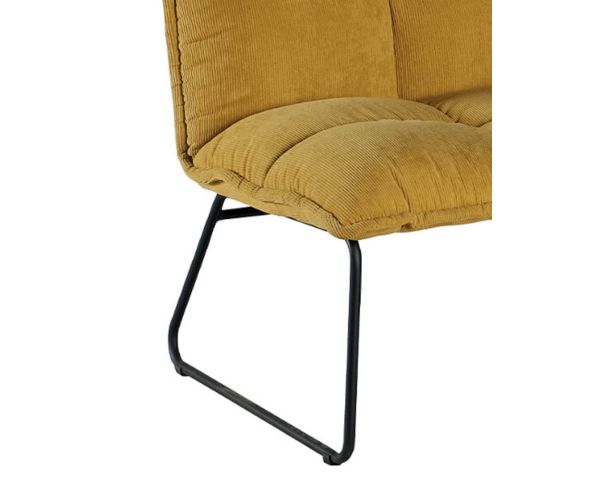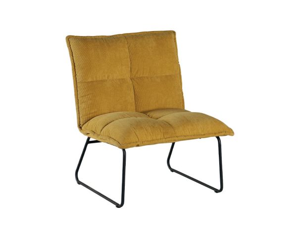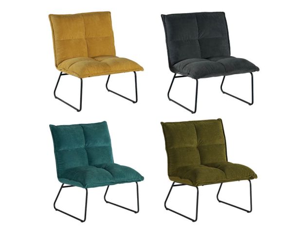 Poltrone in metallo nero e tessuto in poliestere 100% giallo con aspetto trapuntato a coste.