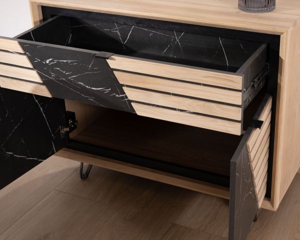 Materiali: Rovere massiccio sbiancato, metallo, MDF