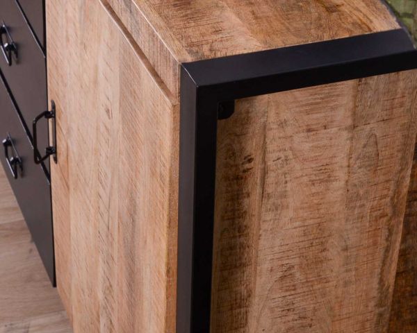 Lo stile factory di questa credenza si adatta perfettamente a un ambiente di tendenza o contrasta con interni più classici. Il legno di mango aggiungerà un tocco di calore al vostro spazio abitativo. Di colore marrone chiaro, questo legno robusto e duraturo presenta belle striature profonde e sottili che conferiscono a questa credenza il suo fascino. L'uso del metallo nero conferisce un tocco moderno e industriale a tutti i mobili. Il tutto perfettamente lavorato per un mobile contenitore con una finitura di qualità.