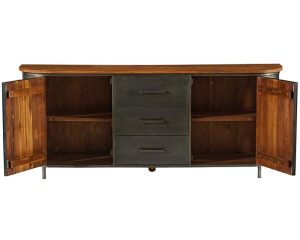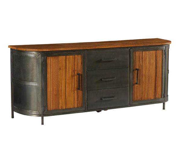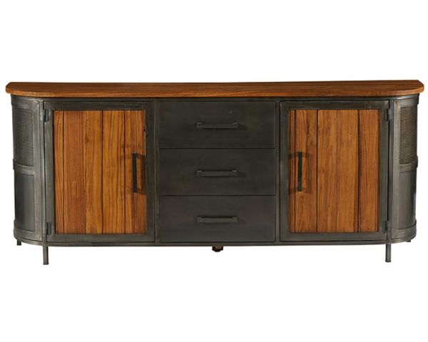 Con il suo stile industriale e la combinazione ideale di teak e metallo, questa credenza "Hepley" lunga 198 cm potrà contenere tutti i vostri oggetti decorativi sul suo ampio piano in legno. Potrete riporre facilmente stoviglie, posate, tovaglioli e altri oggetti nei 2 armadi e nei 3 cassetti montati su guide metalliche ad apertura totale.
