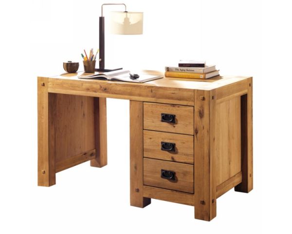 Sarà facile organizzarsi grazie ai tre cassetti ad apertura totale su guide metalliche. Il vostro set da scrittura in pelle vintage e la vostra carta assorbente saranno disposti in modo eccellente e a portata di mano. Avrete anche molto spazio per una lampada da scrivania, il vostro computer portatile e le foto dei vostri figli.