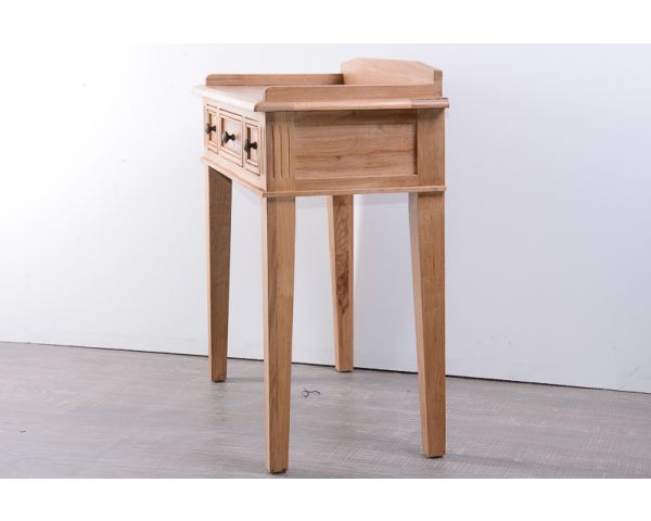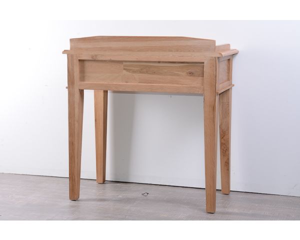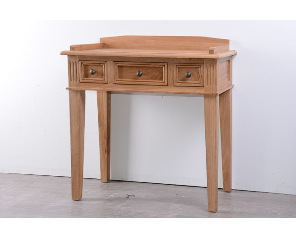 Graziosa scrivania in 100% rovere massiccio. Questa piccola scrivania può essere molto utile anche come toletta o come segretaria. Farà bella mostra di sé in ogni angolo della casa e vi conquisterà con il suo fascino autentico. Questa scrivania è dotata di 3 piccoli e pratici cassetti per riporre, ad esempio, matite e piccoli quaderni. Le maniglie in metallo con pomello li rendono facili da maneggiare.