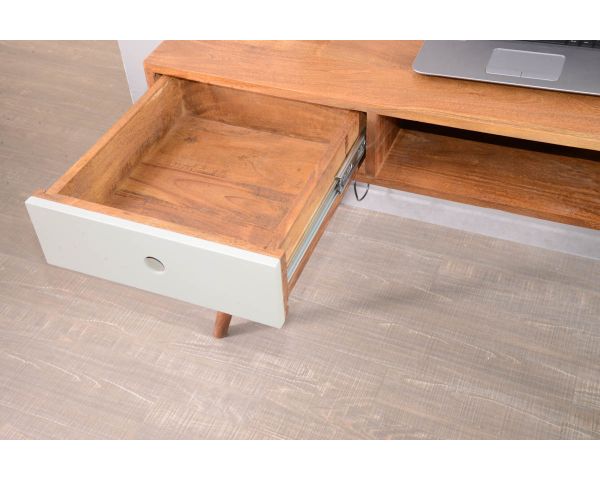 Condimensioni gradevoli di 117 x 60 x 75 cm (lunghezza x profondità x altezza)), il vostro mobile troverà facilmente posto in un angolo del soggiorno trasformato in spazio di lavoro, su un pianerottolo ben illuminato o in un angolo del giardino d'inverno o della camera da letto, ad esempio. Se vi piace lavorare con stile, è l'ideale! Il trattamento grigio del cassetto sinistro in MDF aggiunge un tocco di modernità a questo delicato scrittoio in legno che utilizzerete spesso. Con il suo legno esotico e le sue linee eleganti, il vostro mobile resisterà senza problemi alla prova del tempo.