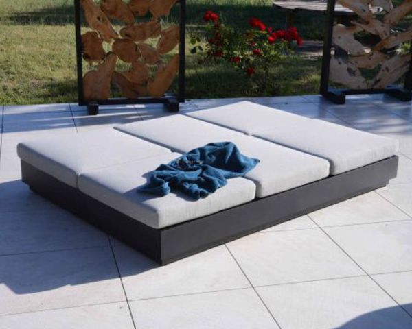Rilassatevi per una pausa sulla vostra sedia a sdraio reclinabile di alta gamma. Se vi godete l'arredamento da esterno solo in due, sarete felici di sapere che ogni estremità di questo mobile si alza su 4 livelli separati. Potrete così mettervi l'uno di fronte all'altro per chiacchierare, sedervi nella stessa direzione ma in posizioni diverse, alzare o meno le gambe...