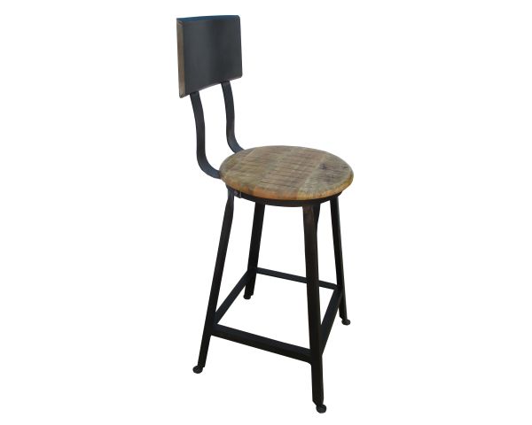 La base in metallo con le sue quattro gambe garantisce una stabilità ottimale e crea un contrasto armonioso con il legno, accentuando ulteriormente il carattere industriale della sedia. Lo schienale in metallo leggermente ricurvo offre un piacevole sostegno, mentre il poggiapiedi garantisce un maggiore comfort.