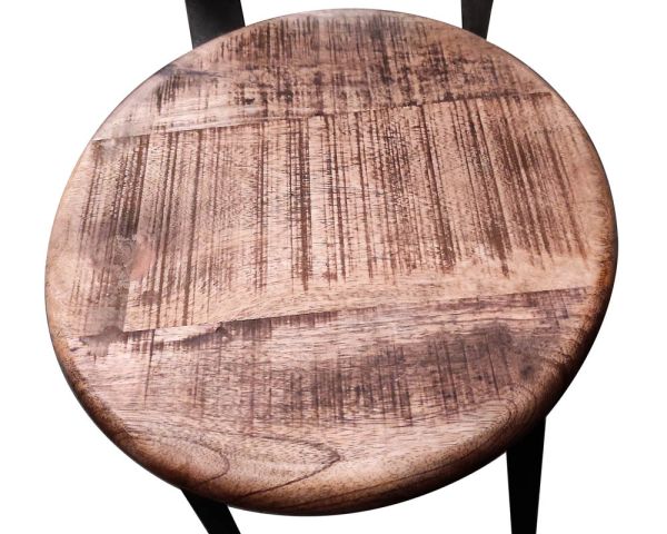 Caratterizzata da una seduta rotonda in legno di mango non trattato, questa sedia unisce robustezza e comfort. Il legno, con la sua finitura anticata, conferisce un'irresistibile estetica vintage e un fascino senza tempo all'insieme.