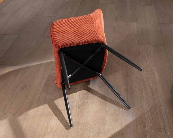 Elegante e confortevole, con il suo ampio schienale e i braccioli imbottiti, la sedia da pranzo in tessuto a coste color terracotta aggiungerà un tocco caldo e accogliente a qualsiasi sala da pranzo contemporanea o bohémien.