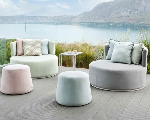 Tessuto Sunbrella®, imbottitura in schiuma QuickDry densità >30 kg/m3, telaio e gambe in alluminio