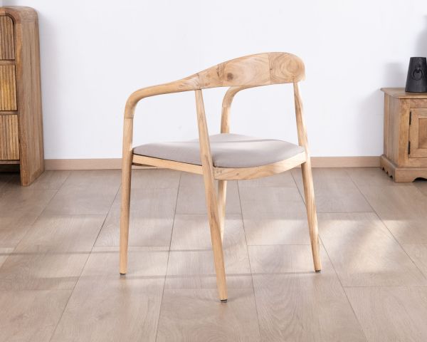 Materiali: Legno massiccio di acacia, tessuto beige, imbottitura