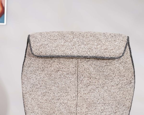 Il design elegante della sedia da pranzo contemporanea in tessuto impermeabile "Osmo" è sottolineato da un tocco chic e originale, con lo schienale orlato che facilita la presa quando ci si accomoda per un momento conviviale.