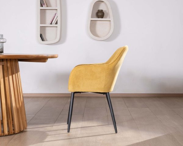 Ravviva la tua area di ricevimento con la sedia in velluto a coste giallo "Scotty".